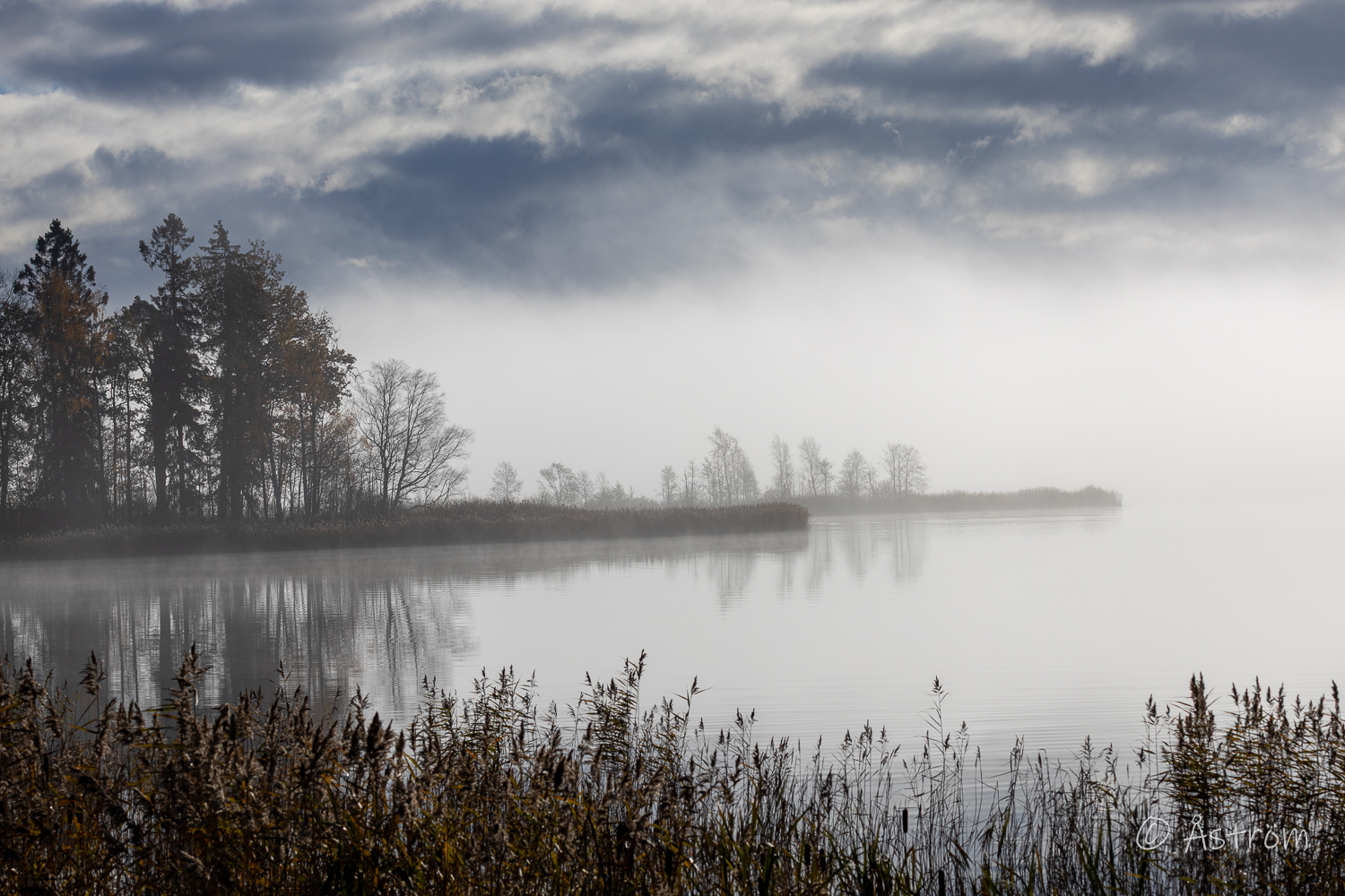 Tog kameran och flanerade ner mot sjön. Promenaden började i mysig dimma och avslutades i solsken. I dag blev det en sväng med stora linsen.